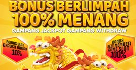 • Slot bonus 100: bonus 100% yang bisa berlaku untuk berbagai jenis pemain